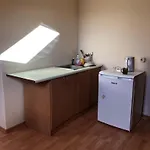 Stajnia Czahary Hotel includes a place for dining with an electric kettle, a fridge, and kitchenware.